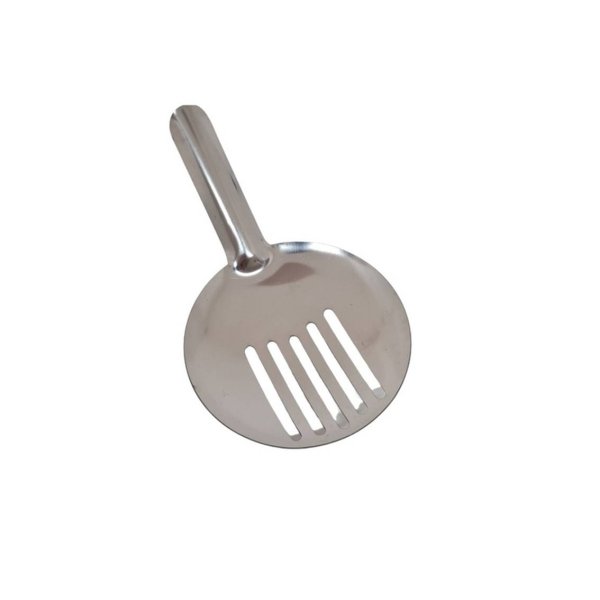 Colador julep fabricado en acero inoxidable mantiene con una forma semi-plana, que permite un mejor sujetado del colador mientras se le usa para detener el hielo y otros complementos usados en la elaboración de bebidas.