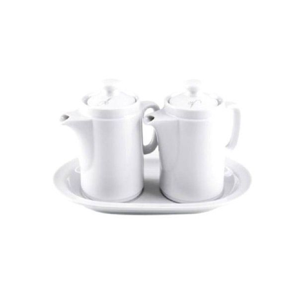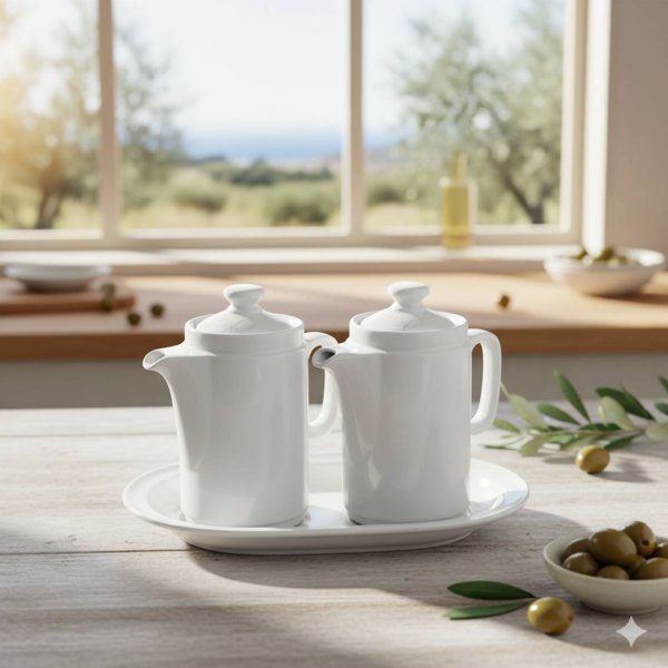 Aceitera/vinagrera con bandeja de porcelana blanca línea 450