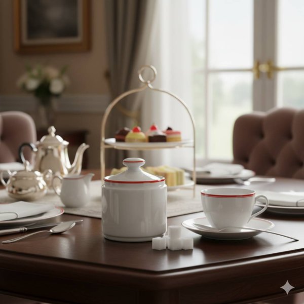 Azucarera fabricada en porcelana blanca con decoración línea 455