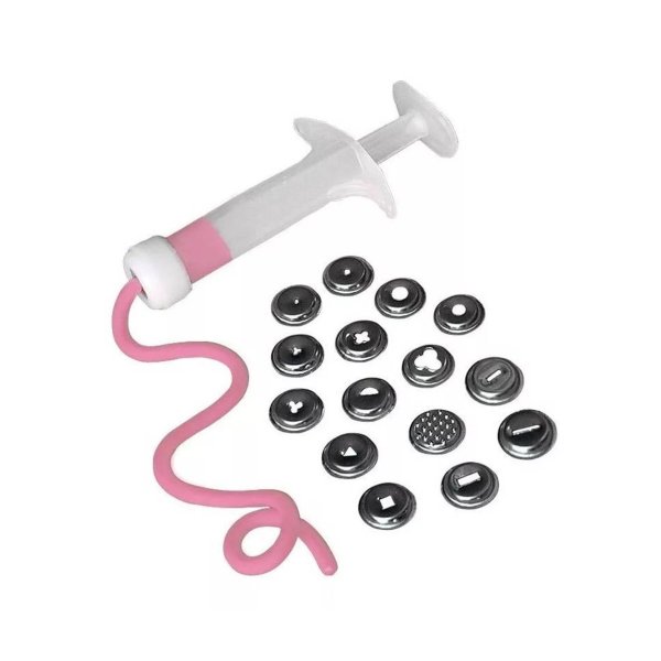 Esta herramienta es ideal para decorar tortas, cupcakes, cookies, huevos de pascua, canastas (trenzadas, encintadas, lisas o acordonadas), mantitas, payasitos, adornos, etc. Se puede operar igualmente eligiendo cualquier boquilla, en remplazo de los discos.