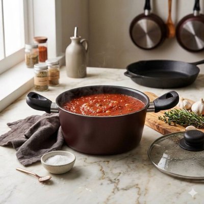 Cacerola línea TERRACOTA, fabricada en aluminio recubierta en antiadherente y con tapa de vidrio