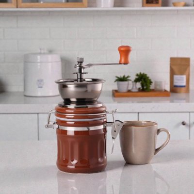 Molino manual para café equipado con un mecanismo de molienda de cerámica. Se le puede ajustar el grosor del molido y sirve para moler café, vainilla, nuez moscada, pimienta y otras especias. Diseño vintage siempre a la moda.