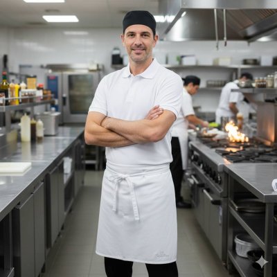 Chomba confeccionada en piqué blanco de algodón con puños tejidos, adaptable a cualquier uniforme empresarial.