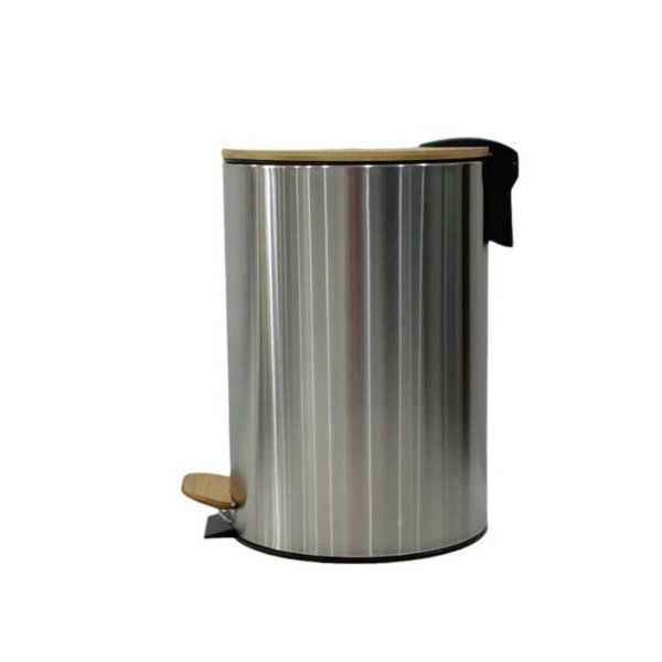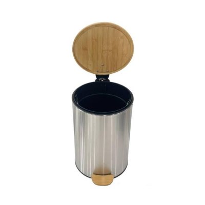Cesto a pedal fabricado en acero inoxidable y tapa de bambú