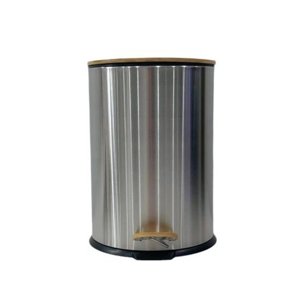 Cesto a pedal fabricado en acero inoxidable y tapa de bambú