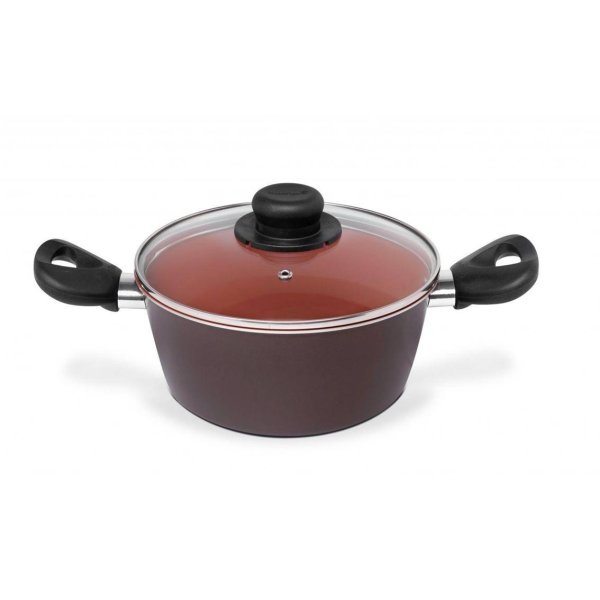 Cacerola línea TERRACOTA, fabricada en aluminio recubierta en antiadherente y con tapa de vidrio
