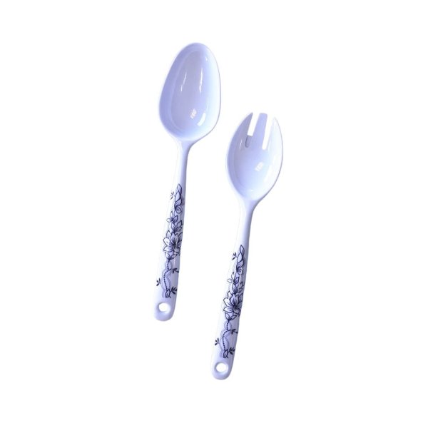 Juego de servir ensalada de melamina blanca con mangos decorados con negro