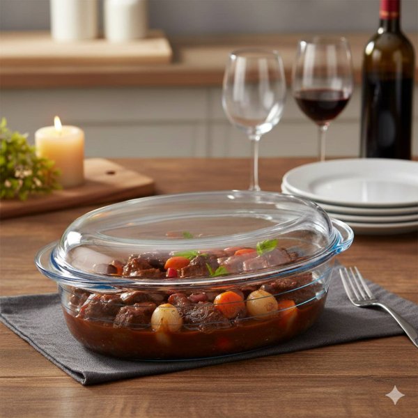 Cacerola ovalada con tapa y asas de vidrio templado