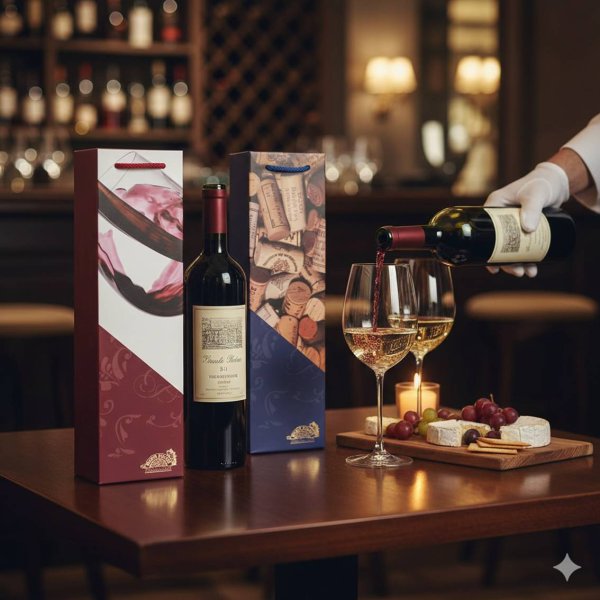 Caja de regalo para botella de vino plegable con cierre imantado y cordón de manija para traslado