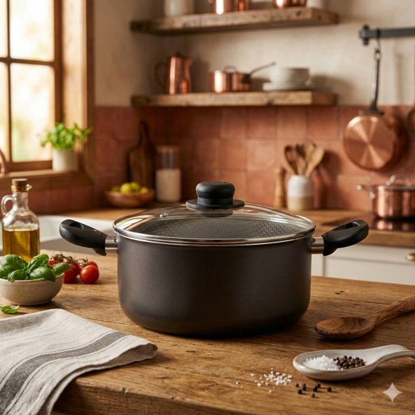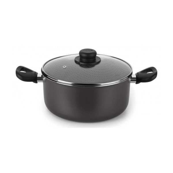 Cacerola línea GOURMET, fabricada en aluminio recubierta en antiadherente y con tapa de vidrio